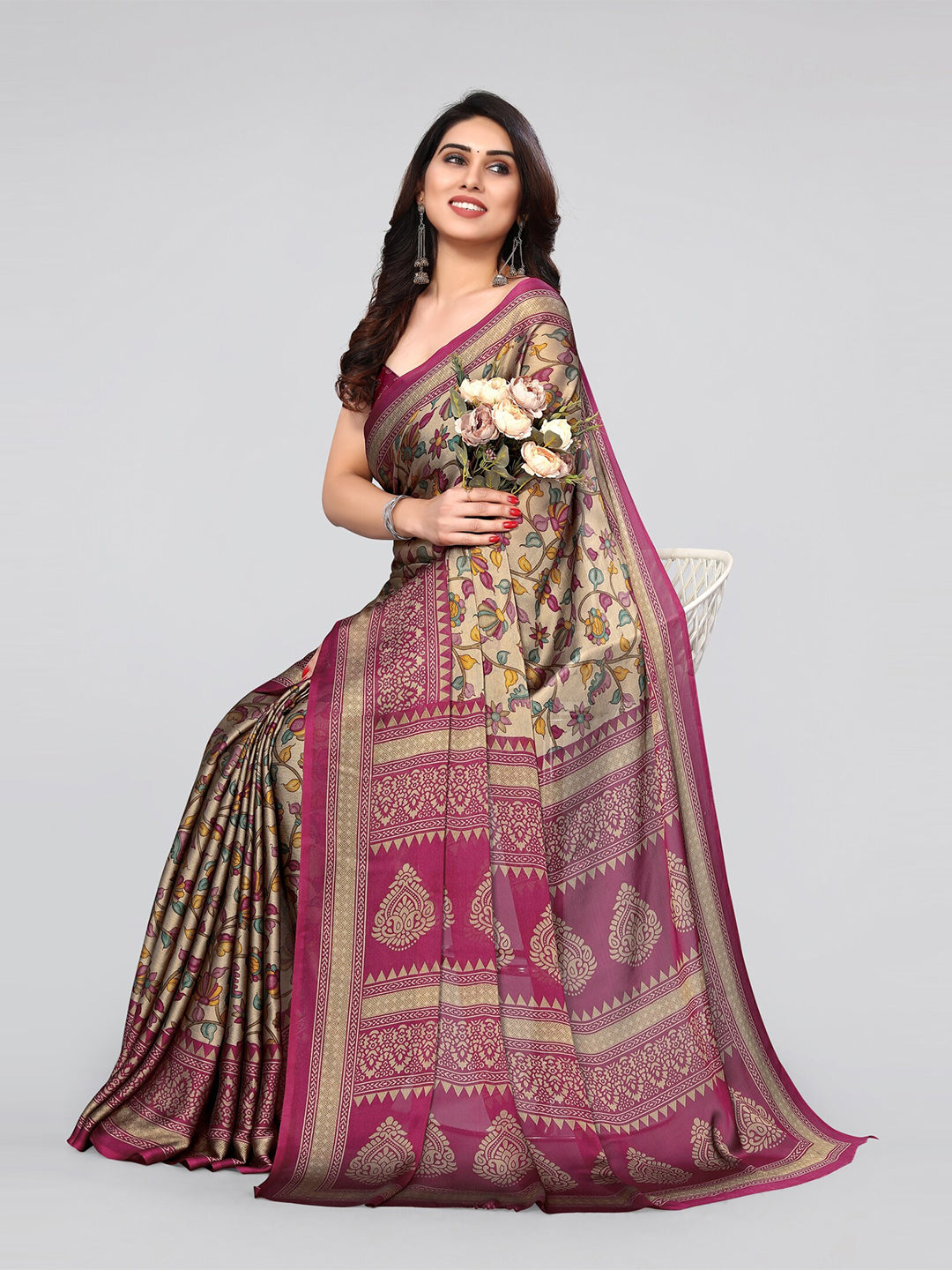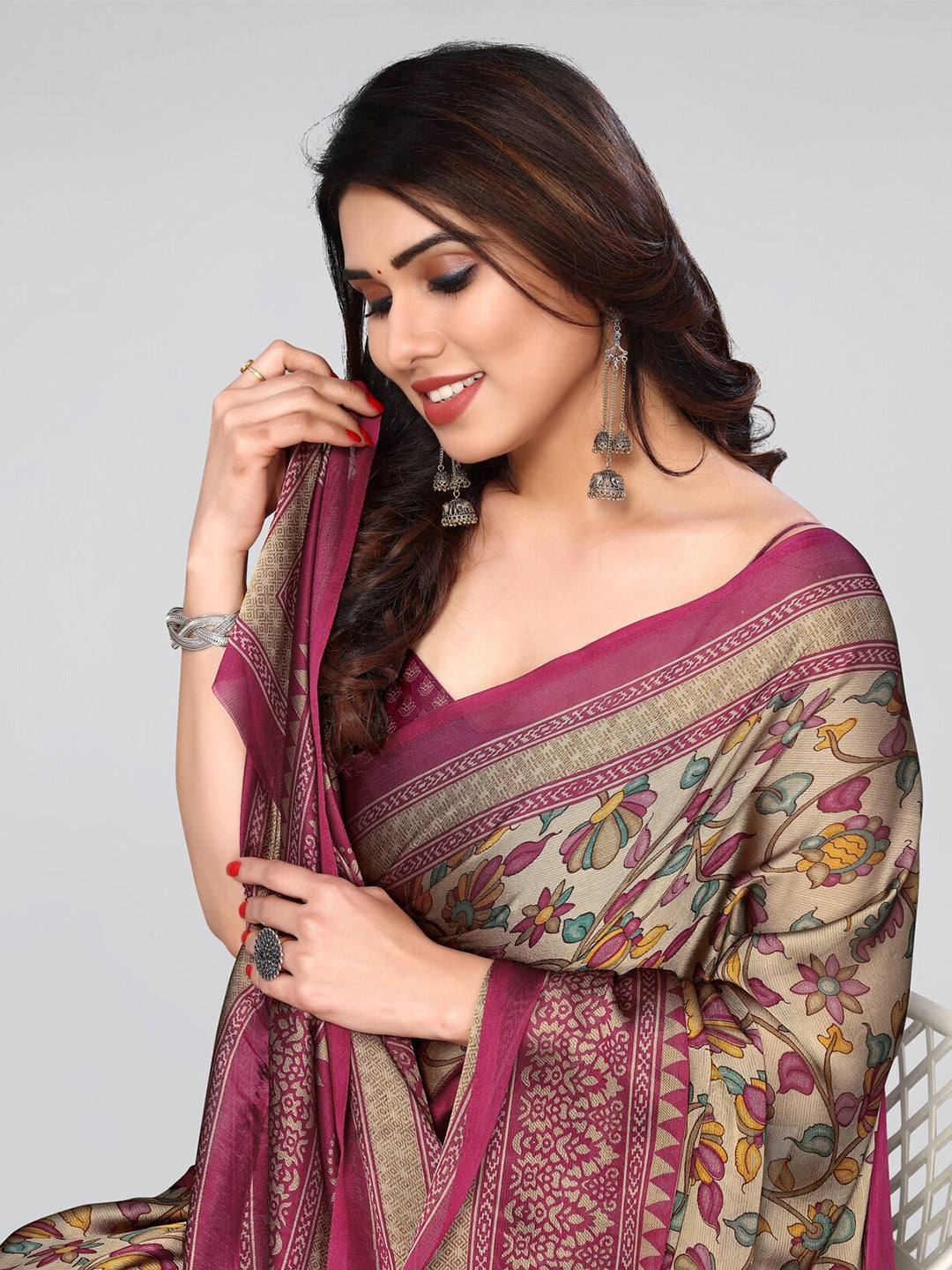 Kalini Floral Printed Saree Product Details Design Details Magenta and beige saree Floral printed saree with printed border  The saree comes ...