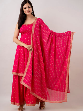 Kalini Women Pink Floral Printed Empire Pure Cotton Kurta & Trousers With Dupatta