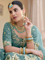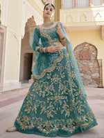 Green Net Embroidered Lehenga features a net with banglori silk inner . Embroidery is completed with Dori & sequins. this outfit is specially designed for this wedding seasons. This Style is made in India and checked by hand to ensure high quality.