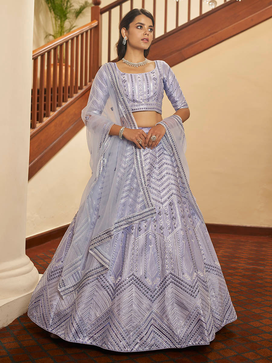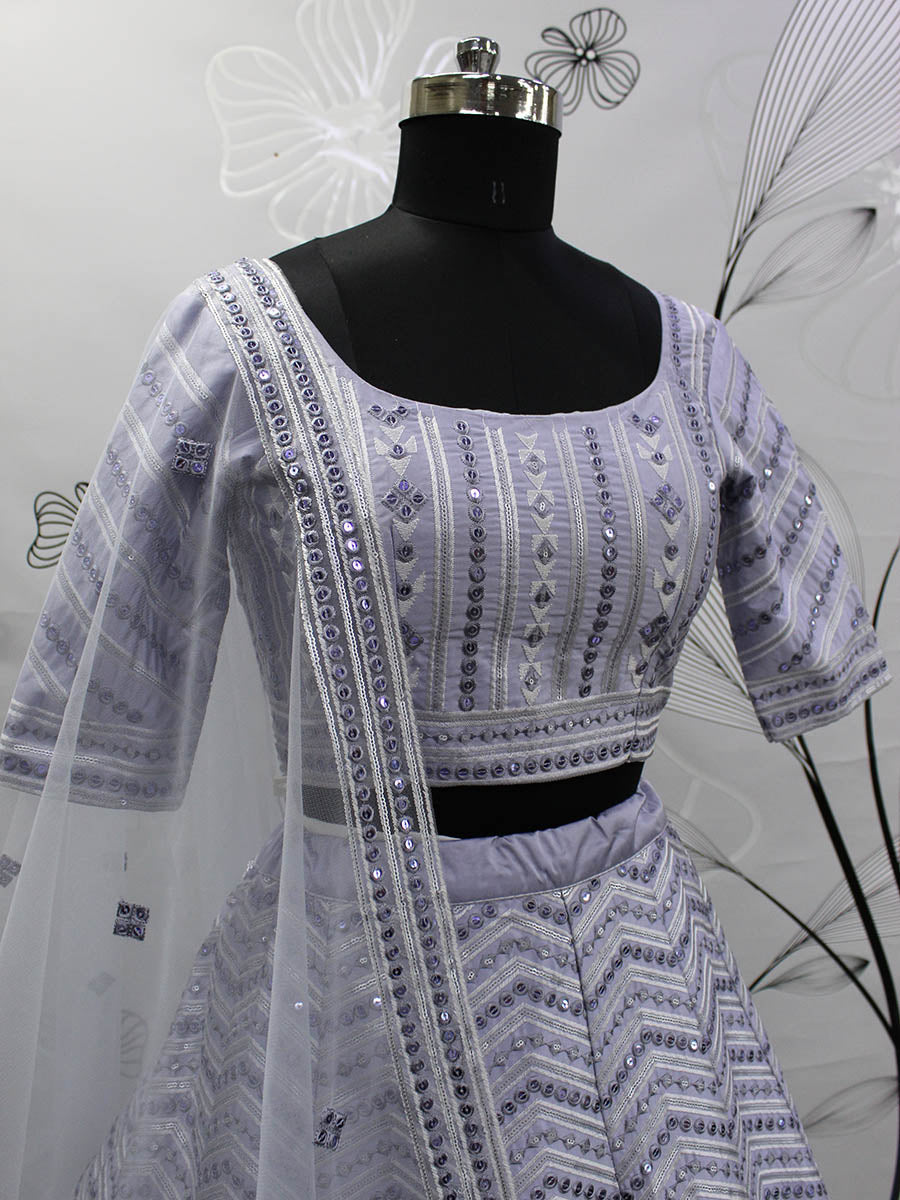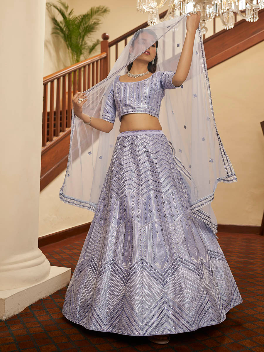 Myra Lavender Silk Embroidered Designer Lehenga - Distacart