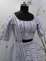 Lavender Silk Embroidered Designer Lehenga features a silk lehenga with silk choli with net dupatta. Embroidery is completed with thread and sequins. This Style is made in India and checked by hand to ensure high quality.