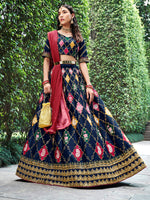 Myra Navy Silk Embroidered Designer Lehenga Choli