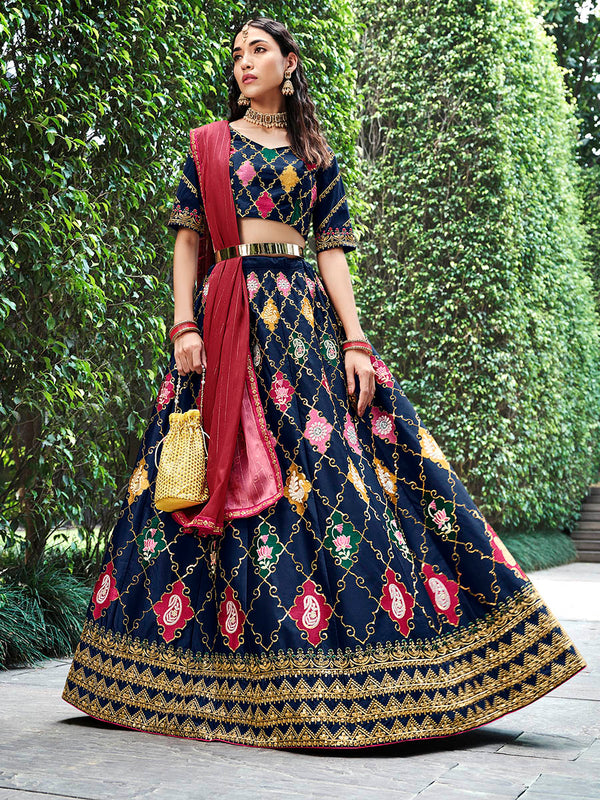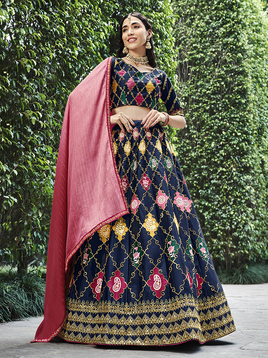 Myra Navy Silk Embroidered Designer Lehenga Choli - Distacart