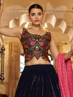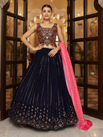 Pink and Navy Blue Georgette Designer Lehenga Choli features a georgette lehenga and georgette choli with cotton dupatta. Embroidery is completed with thread and sequins. This Style is made in India and checked by hand to ensure high quality.