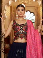 Myra Pink and Navy Blue Georgette Designer Lehenga Choli