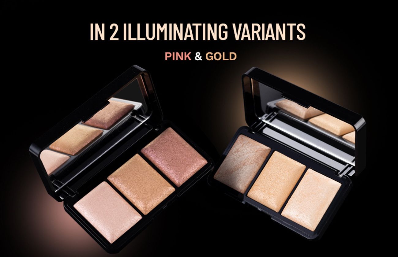 PAC Trio Glow Highlighter X3 Pink - Ultra Blinding Finish, Silky Smooth Texture, Blends Seamlessly