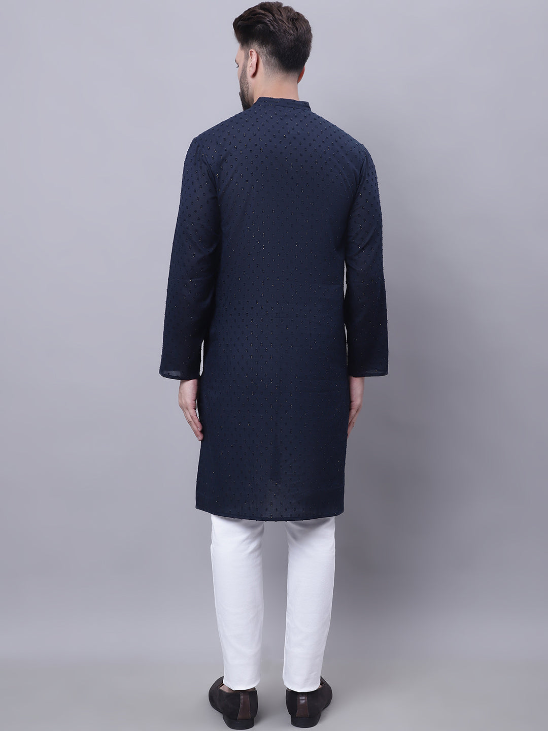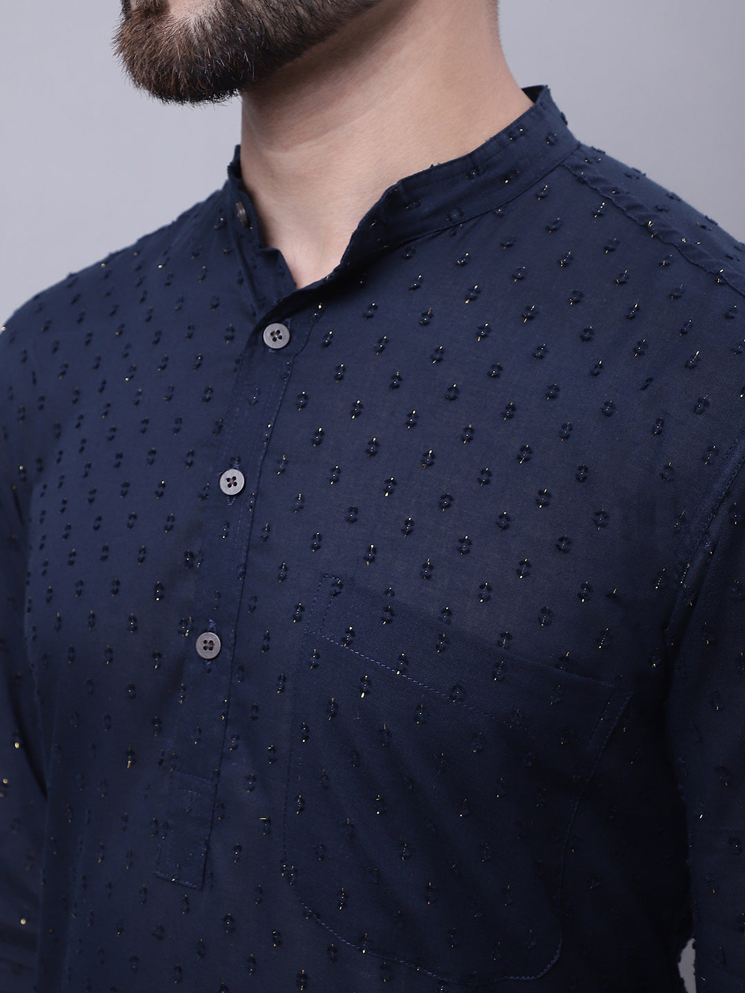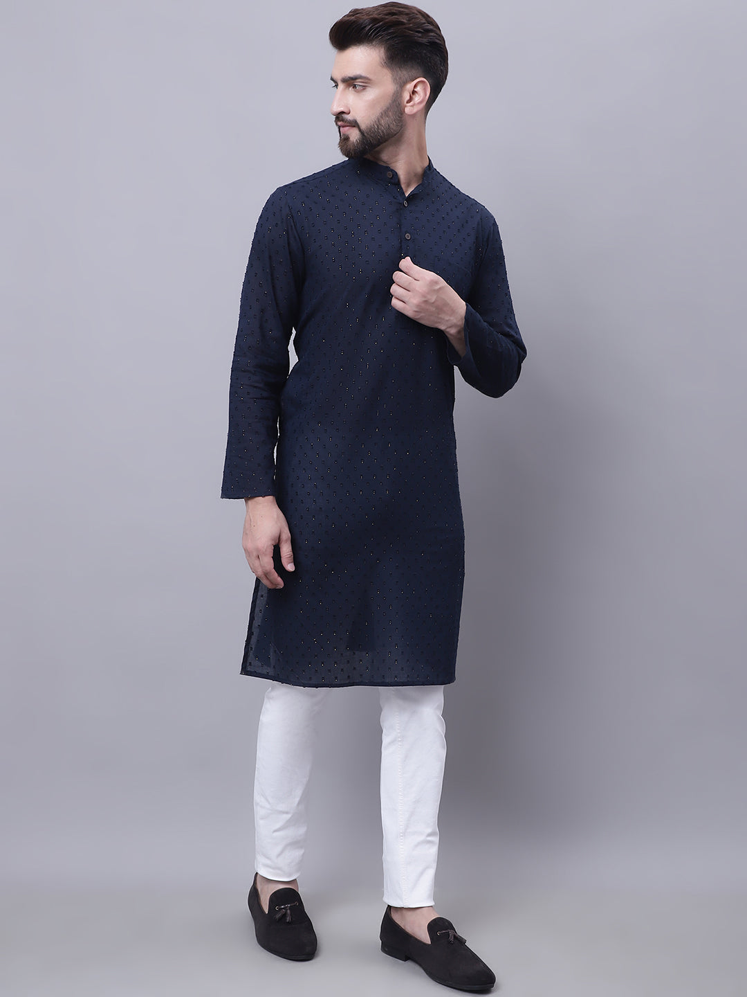 Pure cotton kurta with band collar.