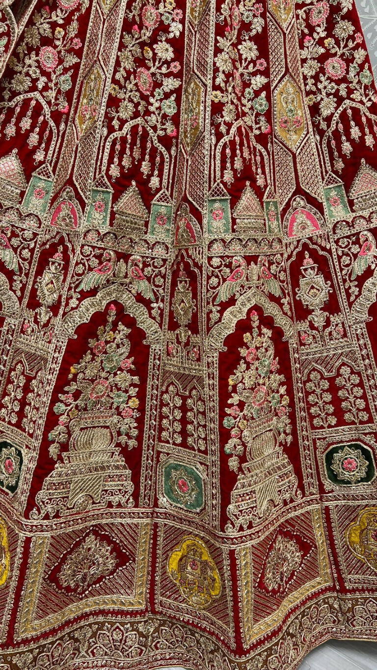 Jyoti Fashion Women's Red Velvet Dori, Multi Thread Embroidered with Diamond Work Wedding Lehenga CholiLehenga• Fabric: Velvet• Inner: Santoon• Wor...