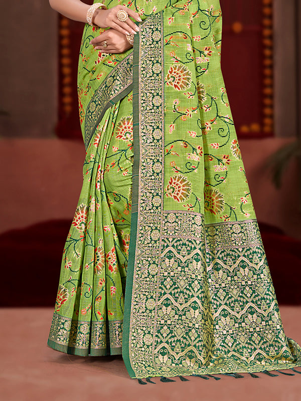 Sangam Prints Green Cotton Silk With Meena Woven Work Traditional Saree - Free Size