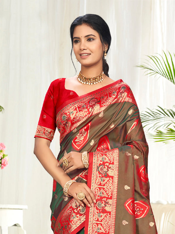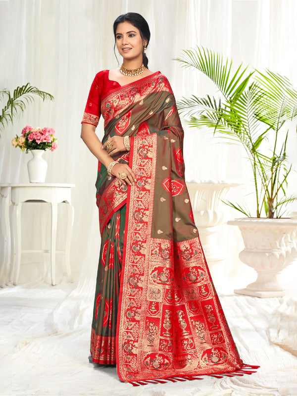 Sangam Prints Light Brown Silk Woven Work Traditional Saree - Free Size