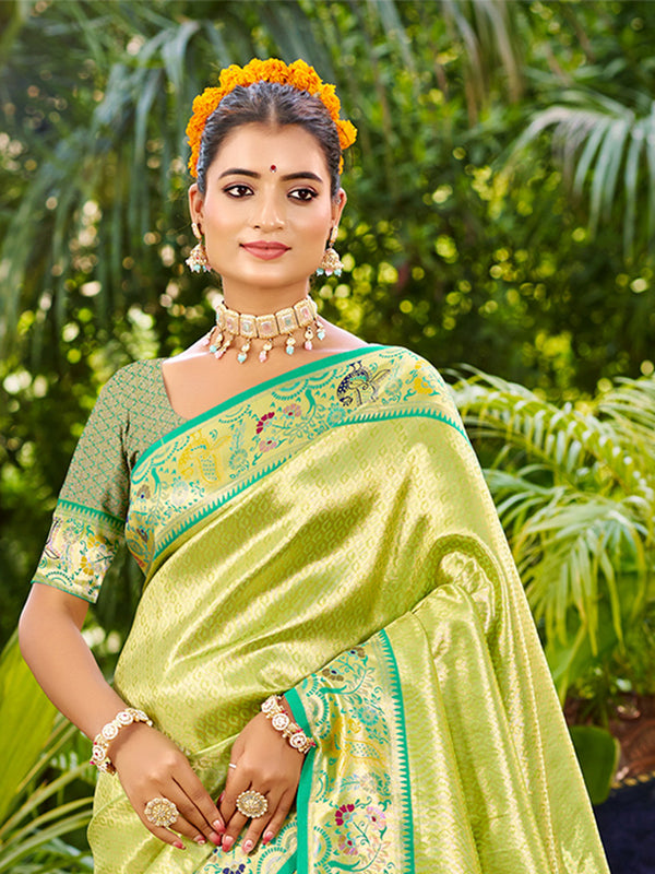 Sangam Prints Parrot Green Silk Woven Work Traditional Saree