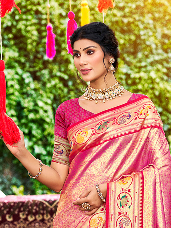 Sangam Prints Pink Silk Woven Work Traditional Saree