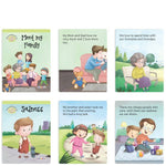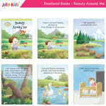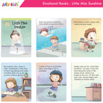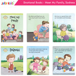 • "Jolly Kids Good & Happy Living – The Emotional Way” Stories books help your kids name & understand feelings and experiences they may be struggling with. “The Emotional Way” series consist of 8 attractive story books which will teach to make a new friend, feelings, beauty, meet family, problems, fear, sadness etc... Preschool children read these picture books independently. Each story in the series teaches the little one’s deal with feelings, emotions, values and how to grow up with family and his friends • “A New Friend” book, Children learn to make new friend, when they are alone, someone pulled funny faces and three little paper balls at her. After school her parents pick up her & they see her daughter sit alone. They come & teach how to make new friend. • In “Anger” book, children know where should we get angry or feel bad such as someone can hurt or shout or they want new toys and many more. After parents teach how to control your anger or different way to manage you angry or bad feeling such as spend some time alone and think or you go for a walk or run in the park or count up to ten.• In “Beauty Around Me” book children learn the beautiful things of the world like nature, high mountains covered with snow, colorful flowers in bloom, cute little ducks floating in the pond, small insects, little butterflies etc.• In “Fear” book, Grandmother teaches my child that there is nothing to be afraid of, and try to overcome his fears like the child is afraid of new people or strangers, afraid of the loud sound of lightning and thunder, when They are sleeping alone at night, when they jump into a pool where the water is deep and much more.• In “Little Miss Sunshine” book, children miss your loving dream, also learn to make new things such as skating, dancing, painting, writing, playing music, swimming and more• In “Meet My Family” book kids learn about the importance of family like how much he helps, cares and loves you, how to spend time for you like playing, telling stories, going to different places, your uncle Auntie, meeting cousins.• In “Every Problem has a Solution” book kids face some problems and they learn to solve the problem like when we make block tower and someone slips on my tower and all the blocks fall. again they make different block towers and they look much prettier than the previous ones.• In “Sadness” book children learn that when they are sad for some reason like he wants to go on picnic and mother didn't take him for picnic or some kids are playing in school ground but they all are not playing with him. Then his family encouraged him by picking him up from school, buying him ice cream, trying to make him laugh by telling funny jokes, taking him to the park and much more.• There are always people out there who care, we can be sure of your sadness with them. Whenever you feel sad again, think of happy things and you will be happy again"