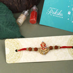 • Let this divine Ganesha Rakhi bring good fortune, prosperity, and health to your brother's life. Tie this divine Rudraksha Ganesha rakhi on your brother's wrist on the pious occasion of Raksha Bandhan.