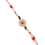 • This elegant rakhi with a minimalist Kundan work at the central motif and its thread embellished with pearls is just perfect for your sophisticated brother. So, order or send this Kundan rakhi for your brother online from us and leave him amazed by your choice on this Raksha Bandhan.