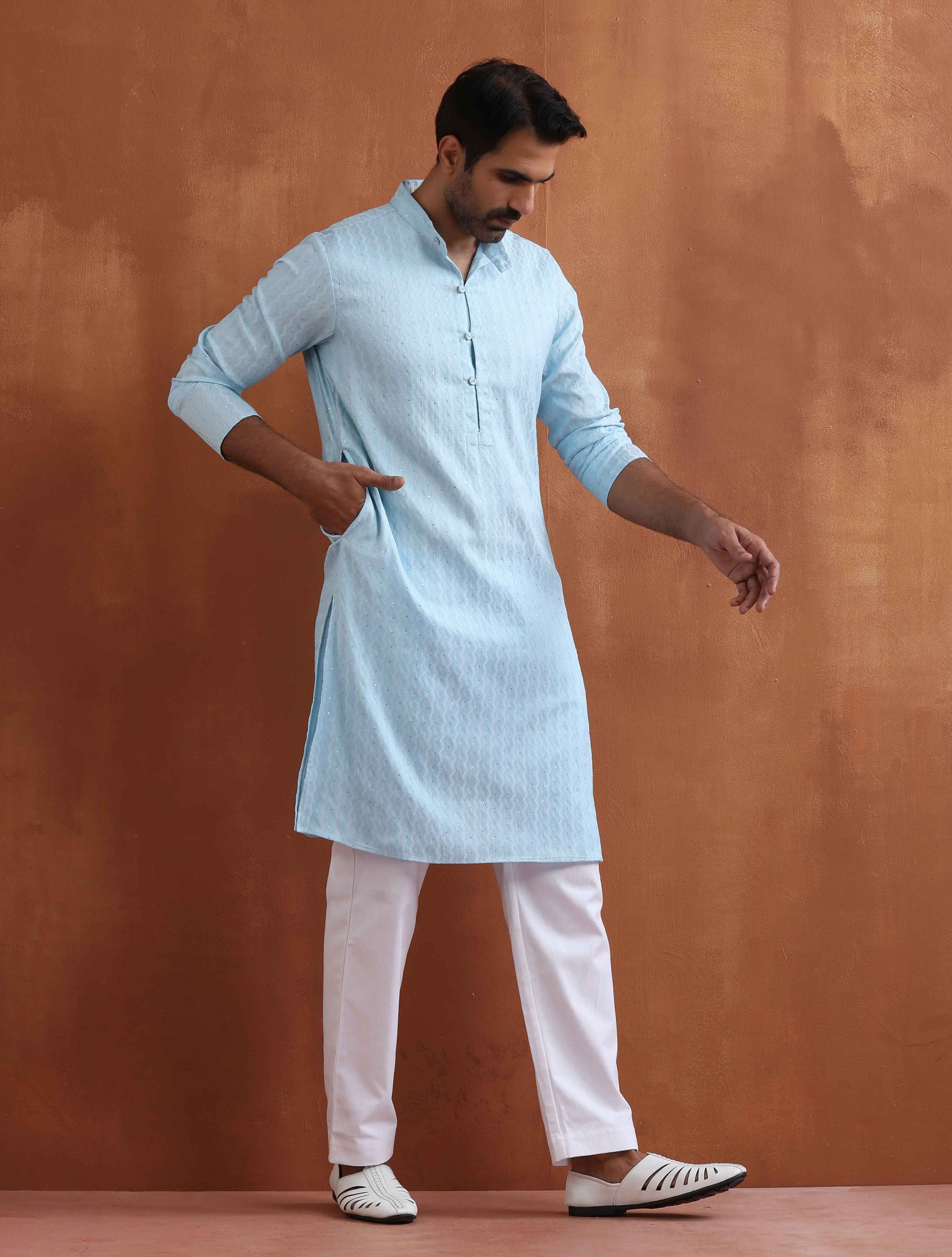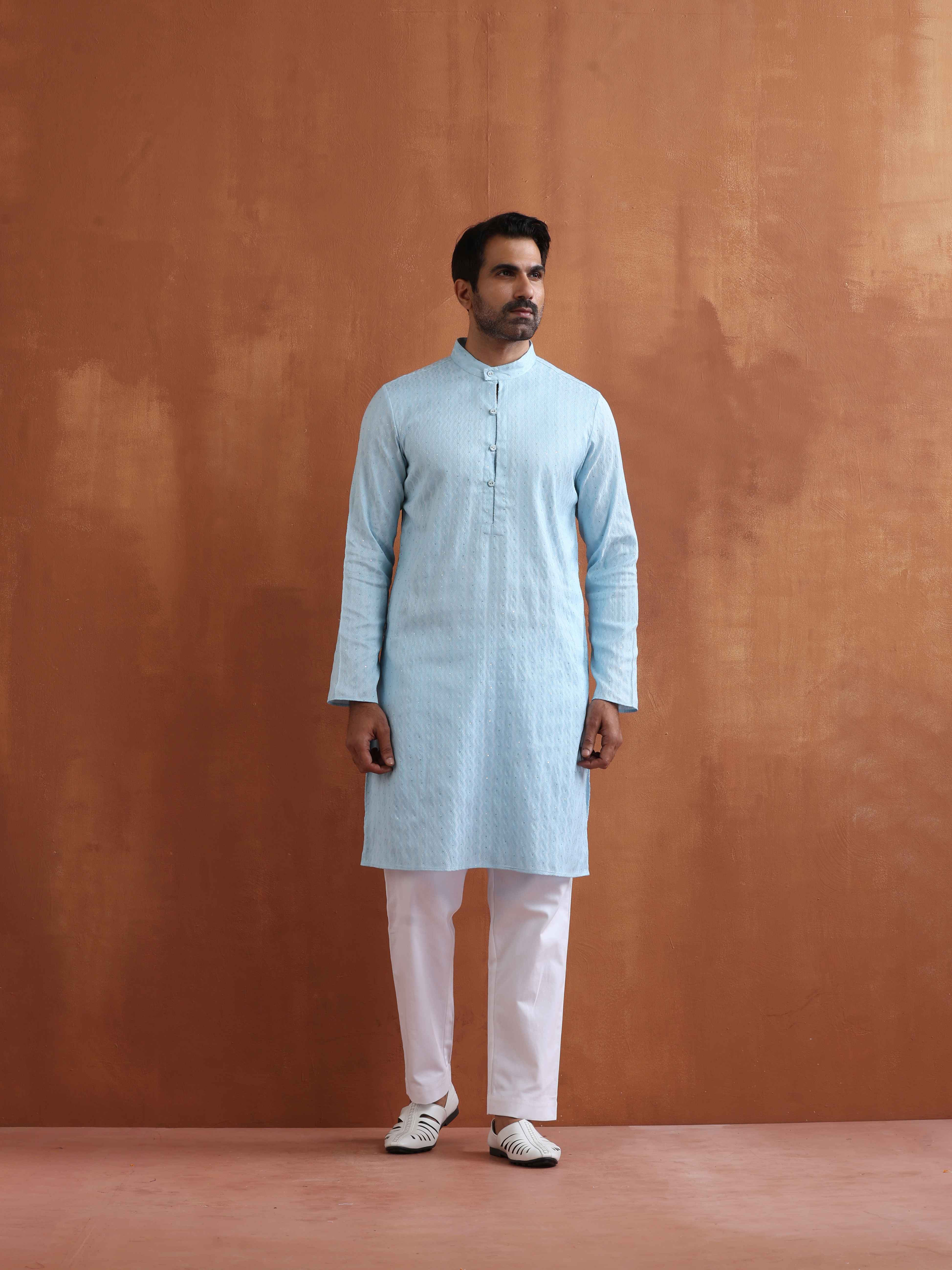 • Upgrade your festive wardrobe with this blue chanderi kurta.