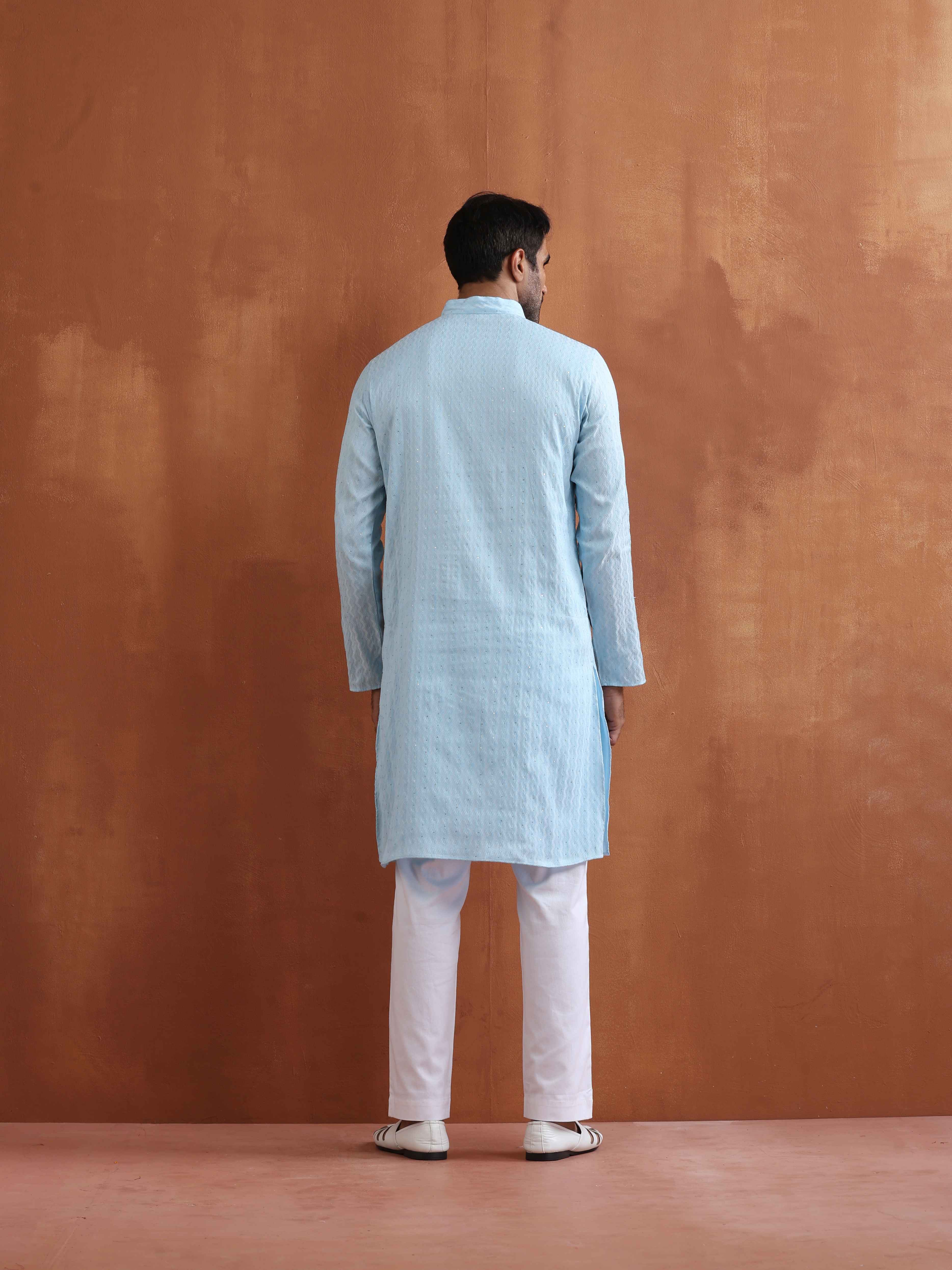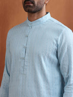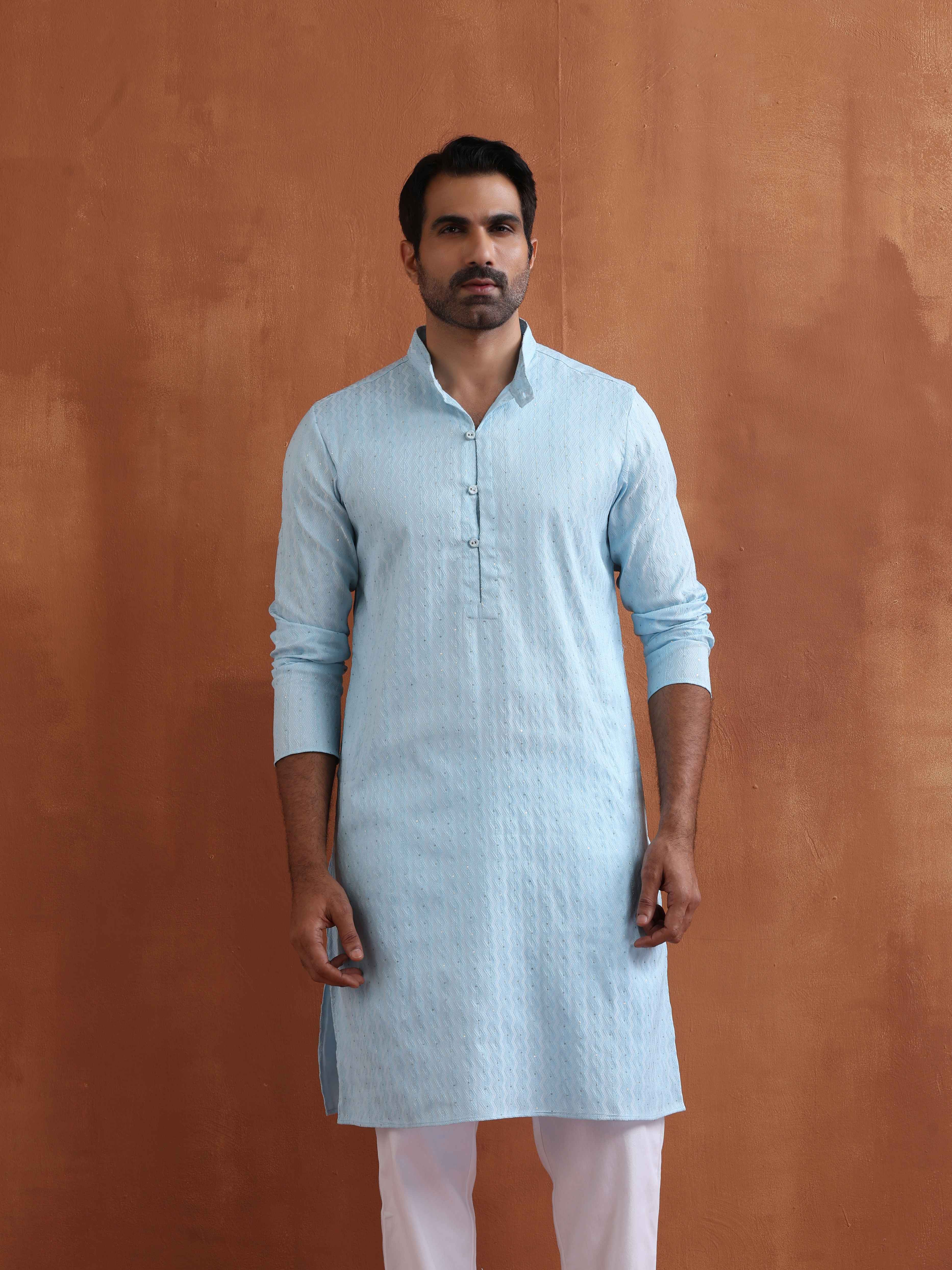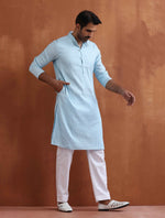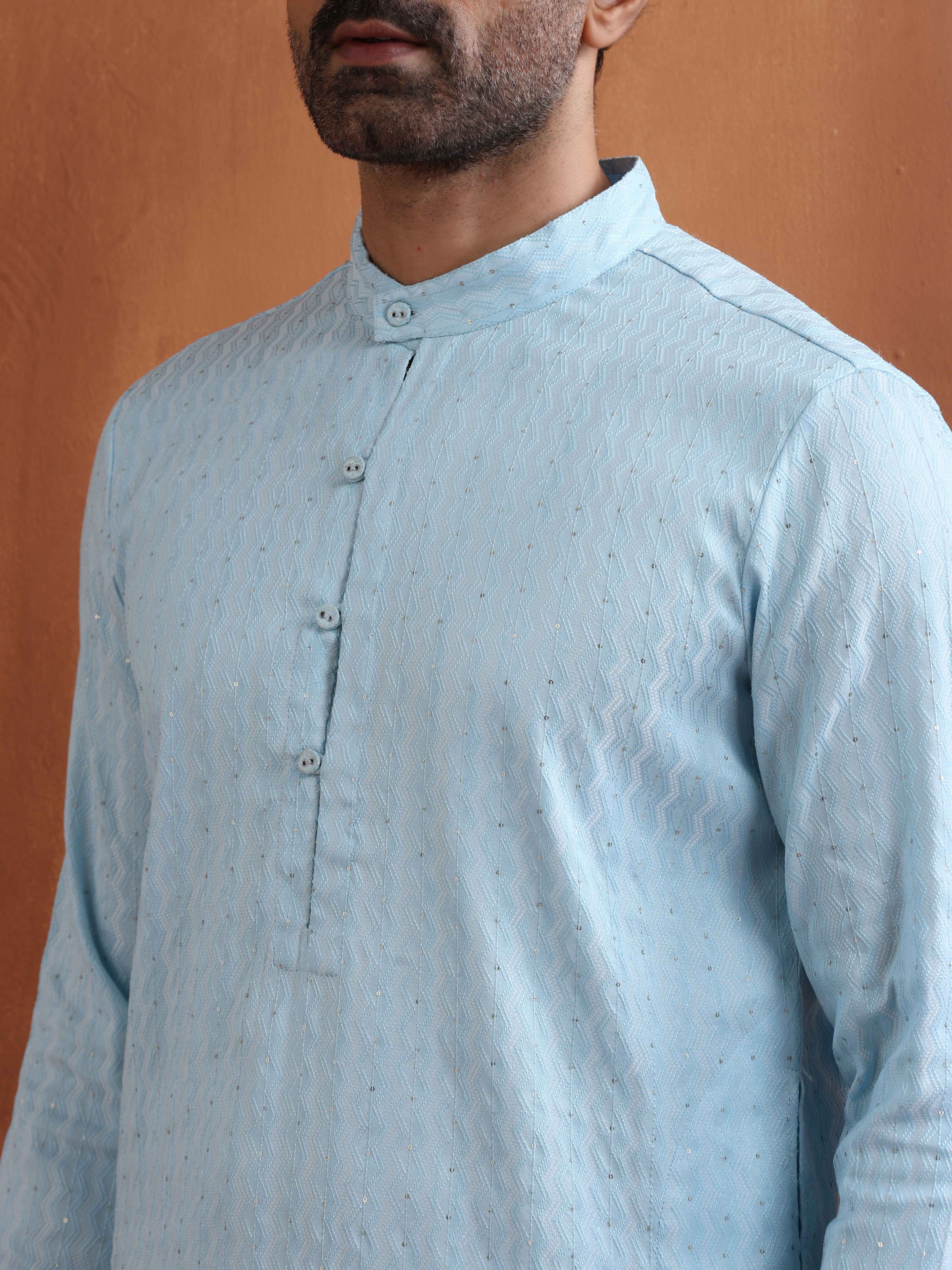 trueBrowns Men's Blue Sequin Chanderi Kurta