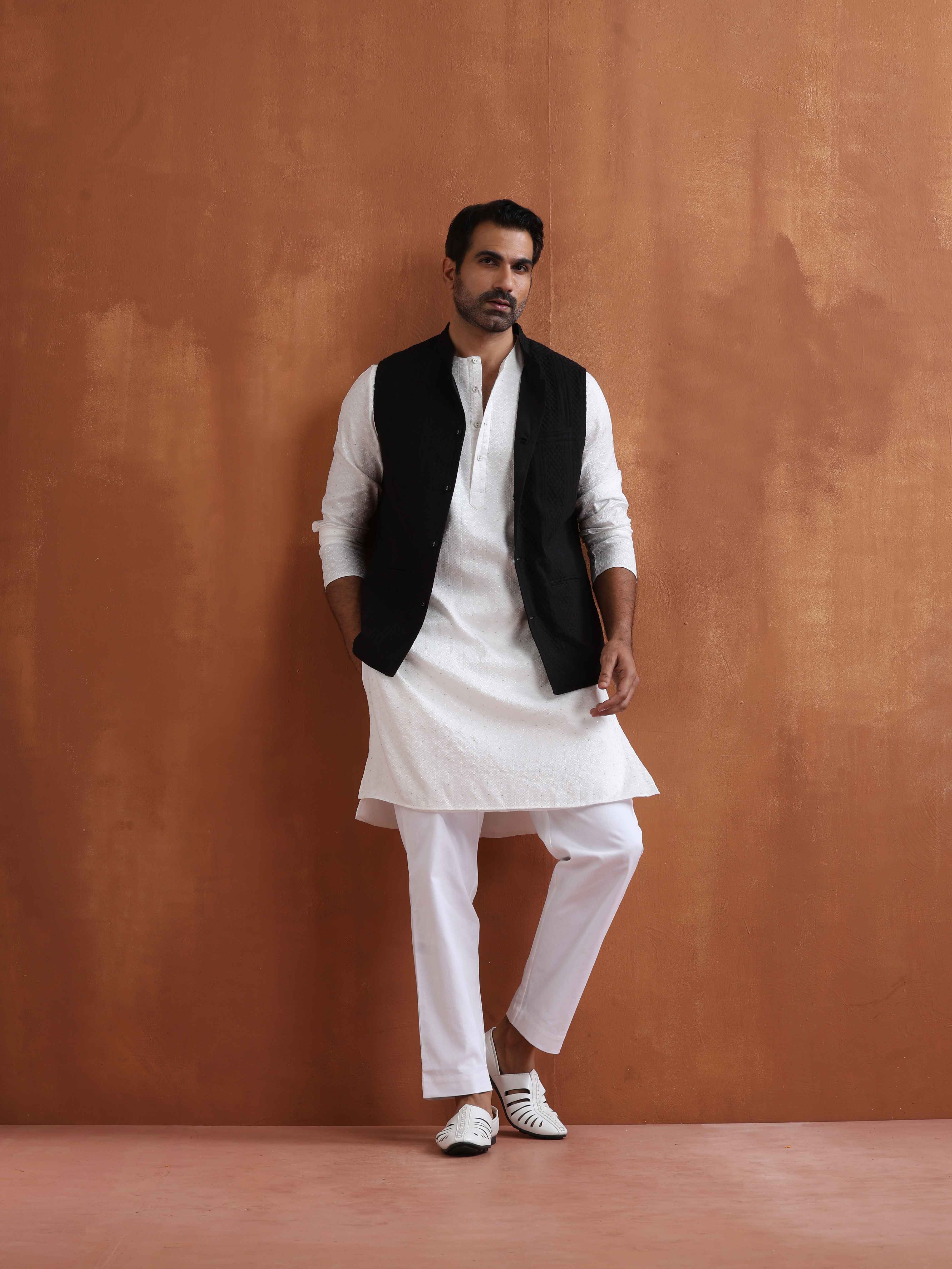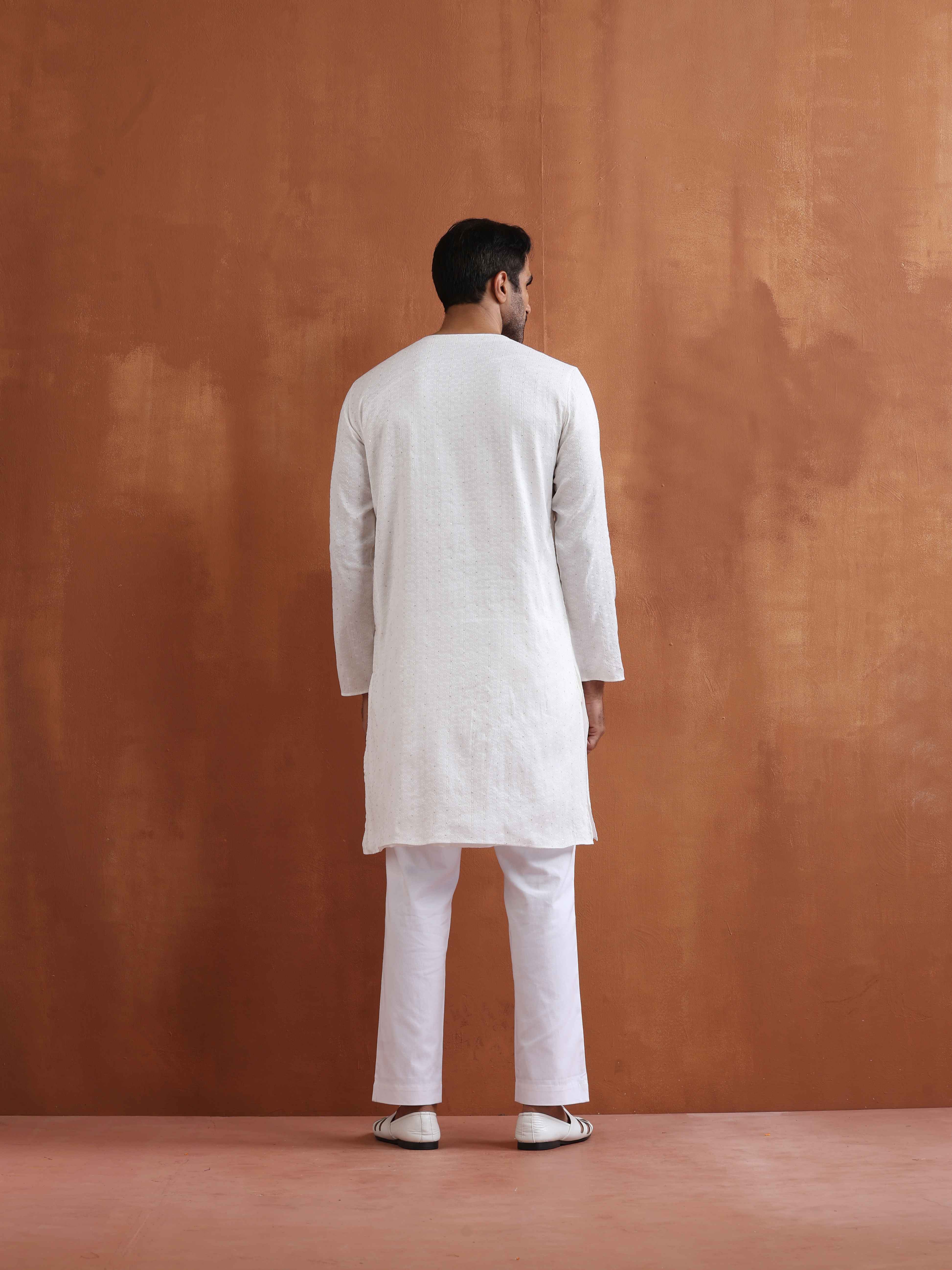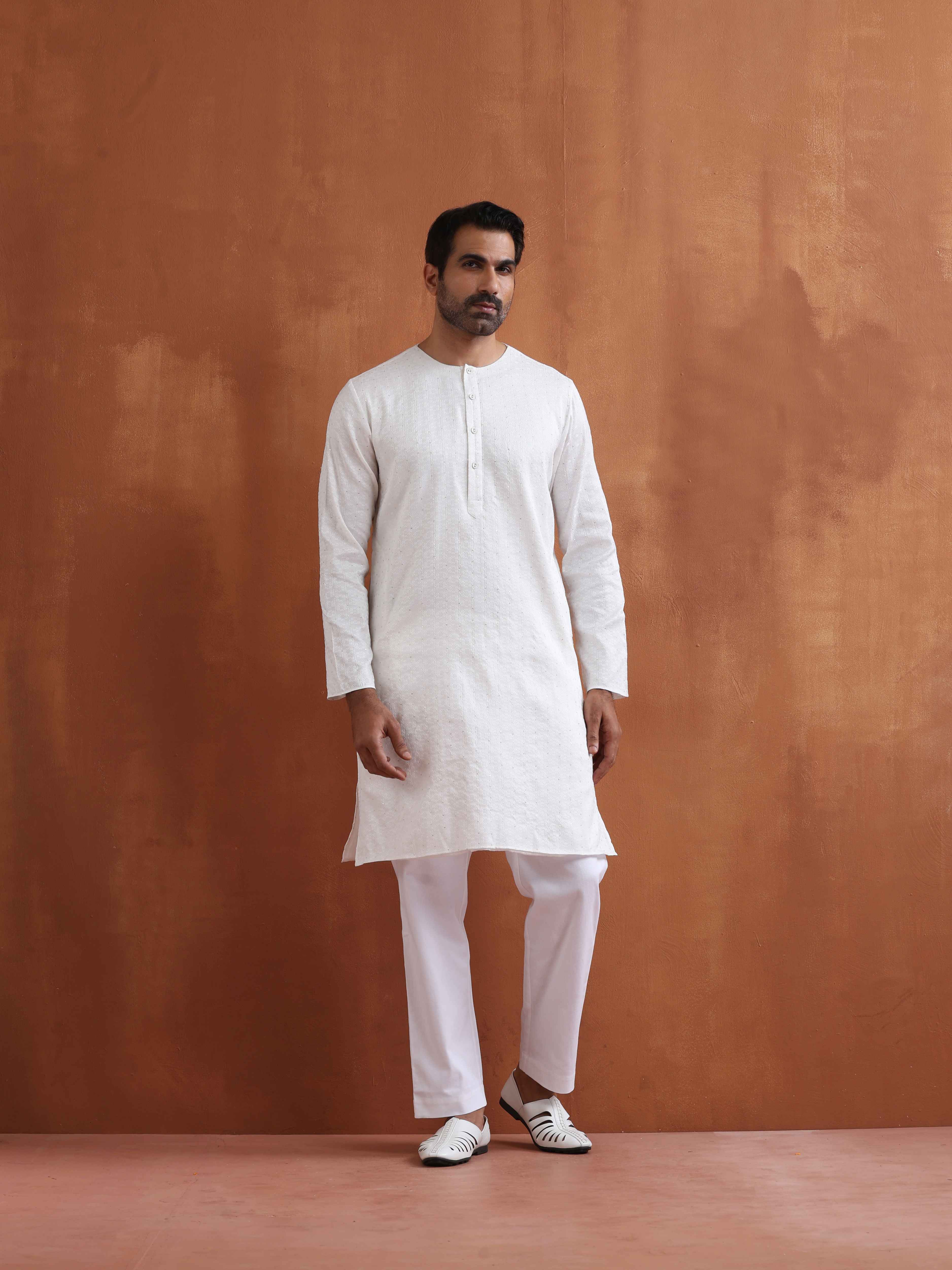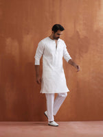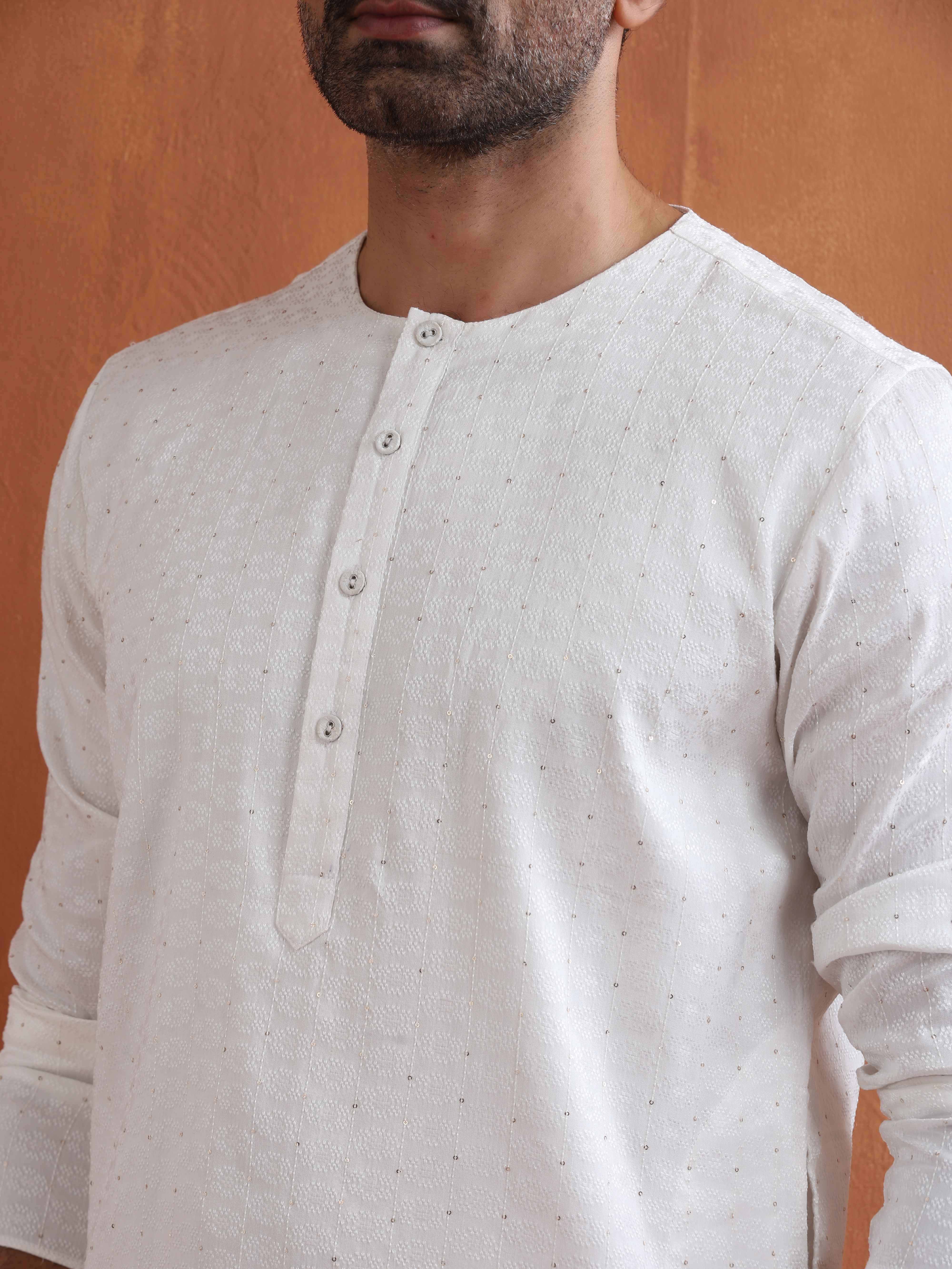 trueBrowns Men's Ivory Sequin Chanderi Kurta