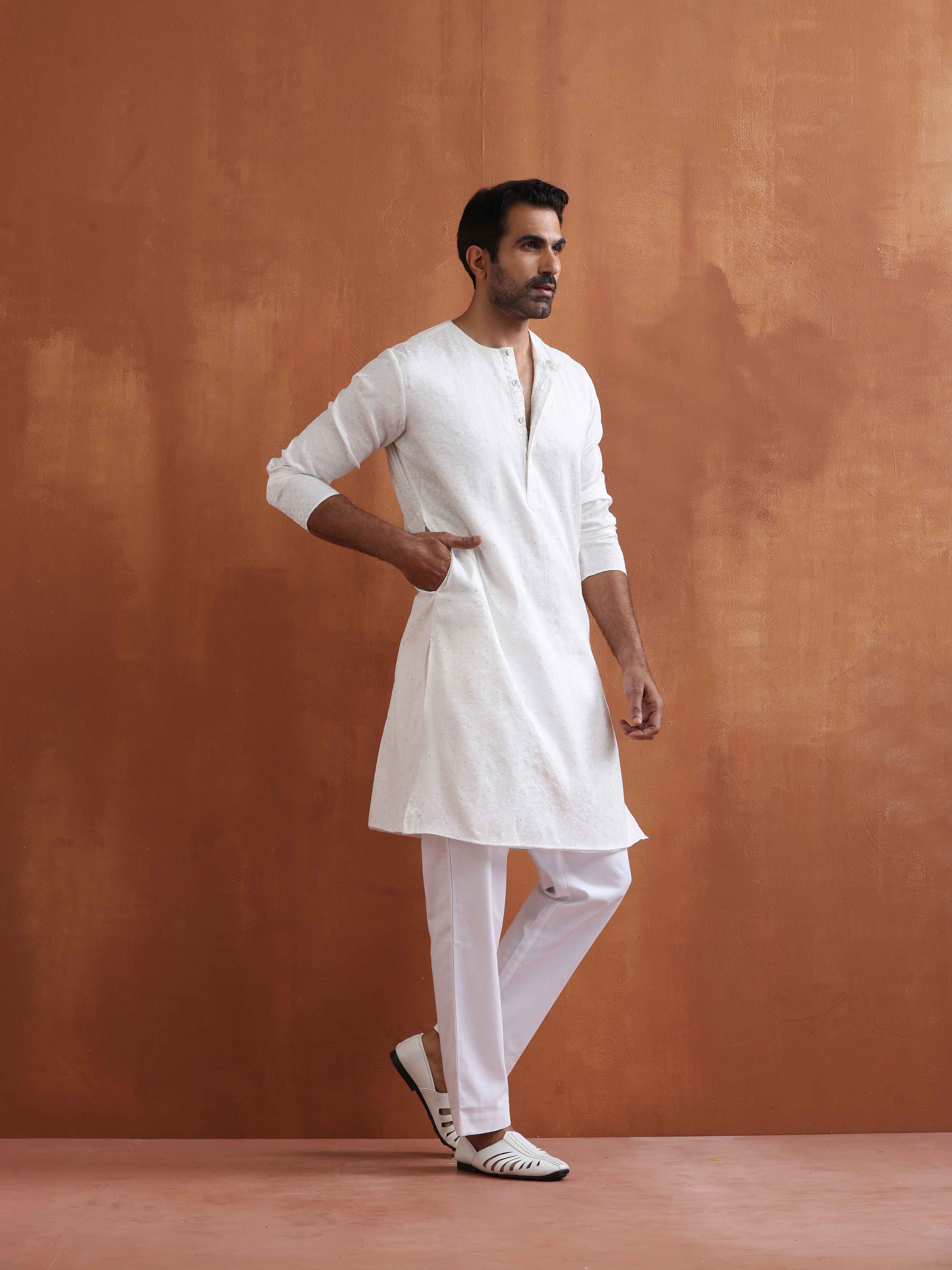 trueBrowns Men's Ivory Sequin Chanderi KurtaDescription Upgrade your festive wardrobe with this ivory sequin chanderi kurta. Perfect for any occasi...