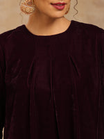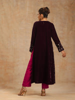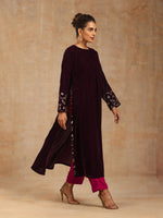 trueBrowns Wine Velvet Embroidered Kurta - 2XS
