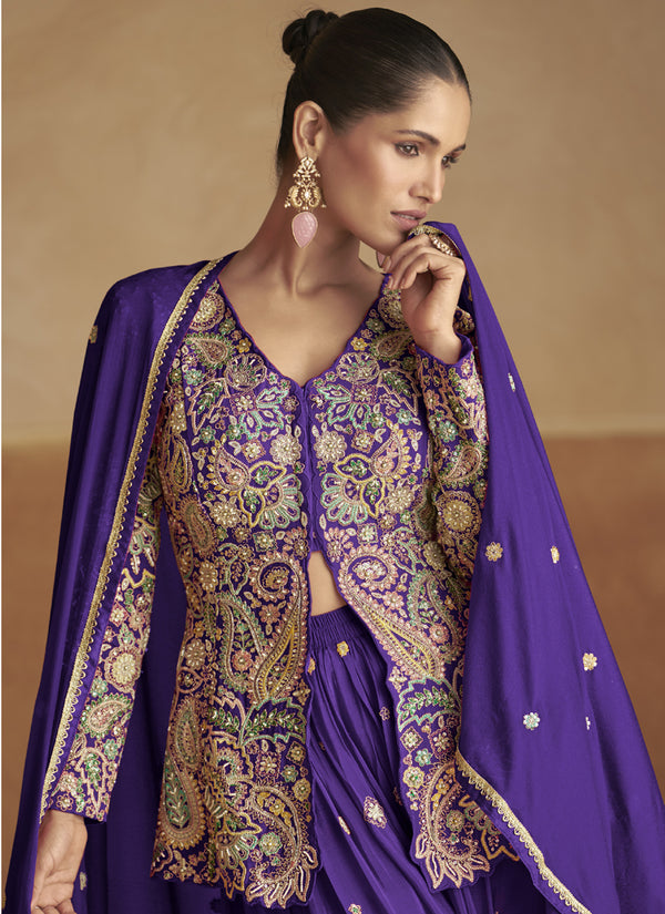 Vegaa Fashion Violet Pink Chinon Silk Embroidered Designer Palazzo SuitProduct Details:Wedding suit is the perfect choice for Indian festive or wed...
