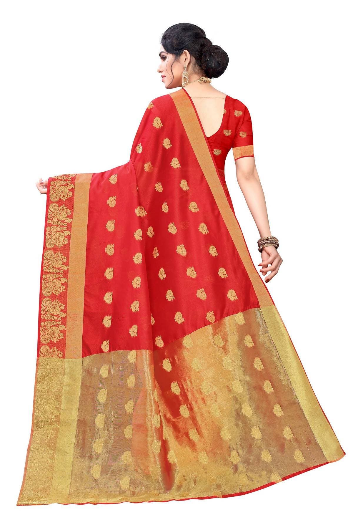 Vamika Banarasi Jacquard Weaving Red SareeWork: WeavingPattern: BanarasiPackage Contents: Saree & Blouse PieceSaree: Length: 5.40 meters Fabric...
