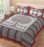 Vamika Printed Cotton Red Tree Stripe Bedsheet With Pillow Covers (PM Treestripe Red)