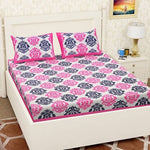 Vamika Printed Cotton White & Pink Flower Design Bedsheet With Pillow Covers (LEOC_PPNKC_P)