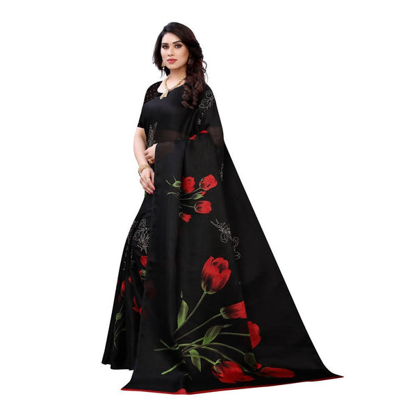 Vamika Printed Jute Silk Black Saree (Elisa Black)