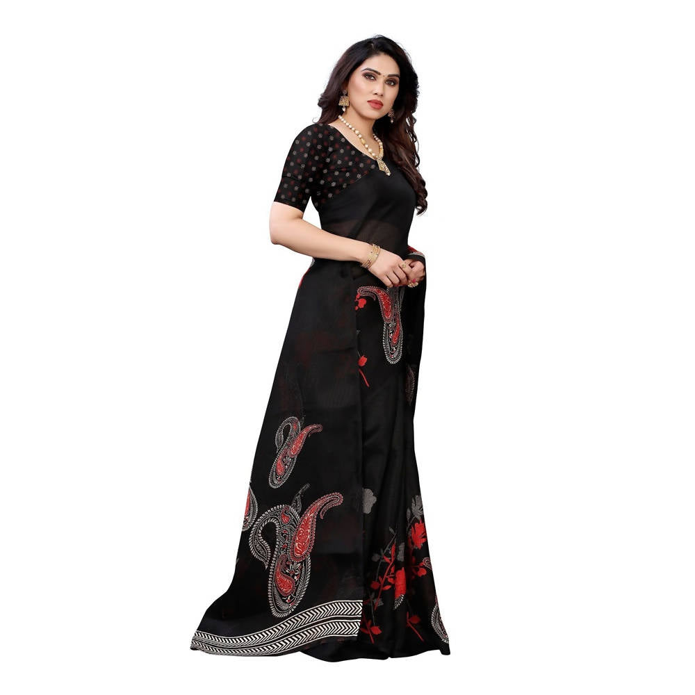 Vamika Printed Jute Silk Black Saree (Leo Black)