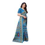 Vamika Printed Jute Silk Blue Saree (Rishika Blue)