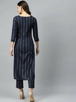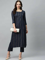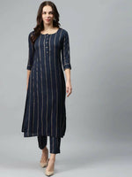 Vamika Printed Rayon Blue Party Wear/Casual Wear Kurta Set/Suit