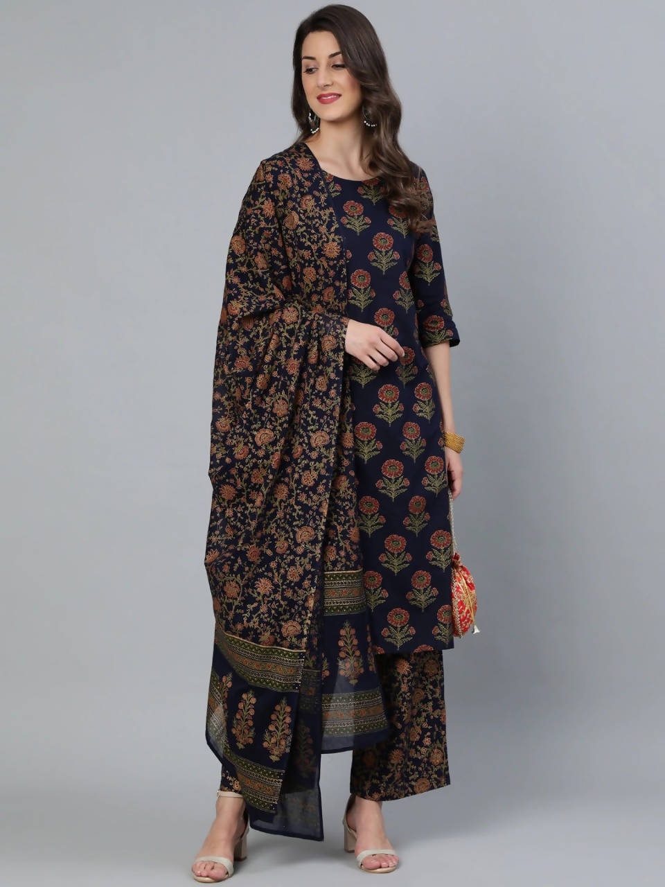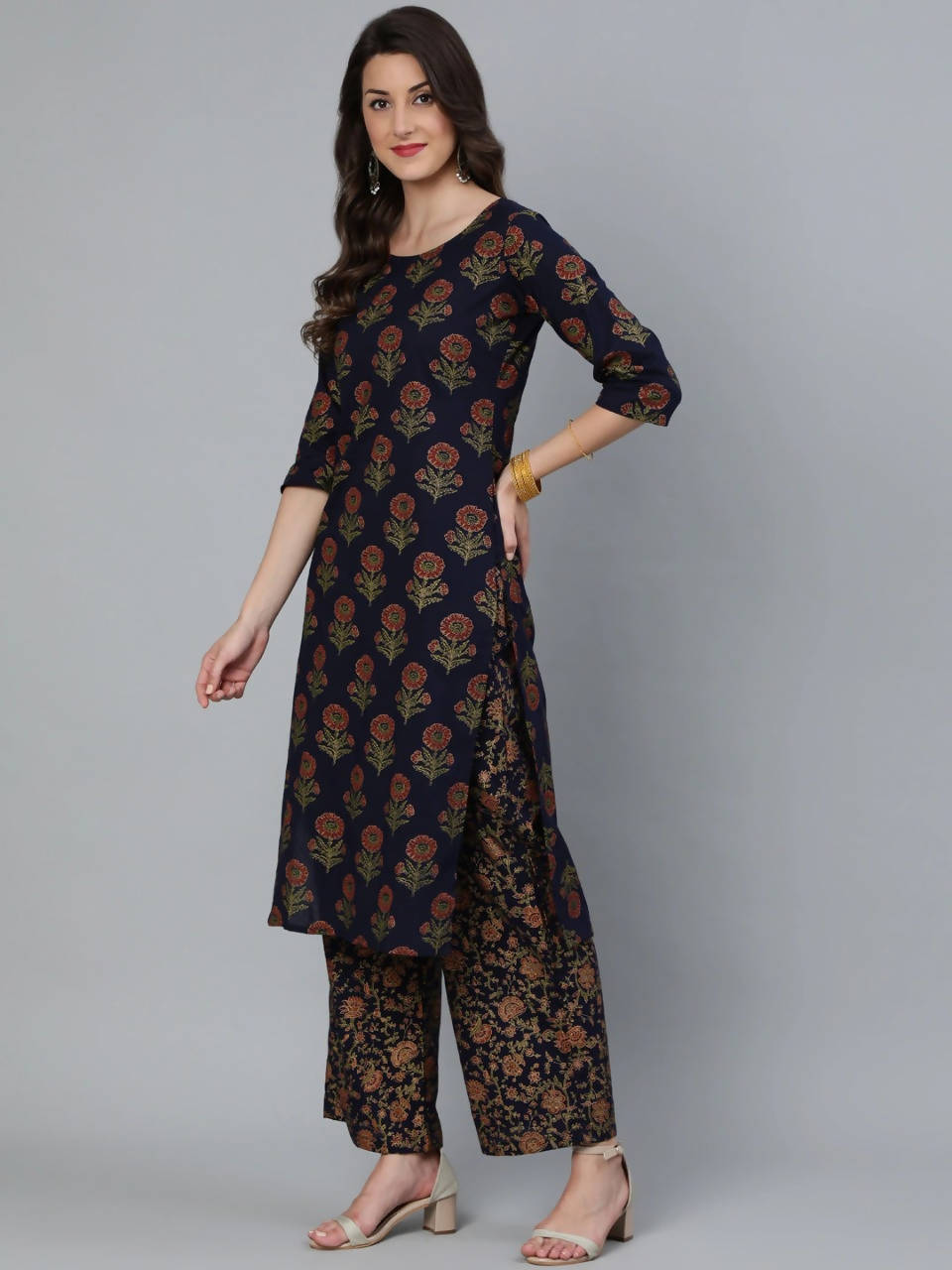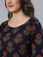 Vamika Printed Rayon Navy Blue Party Wear/Casual Wear Kurta Set/Suit