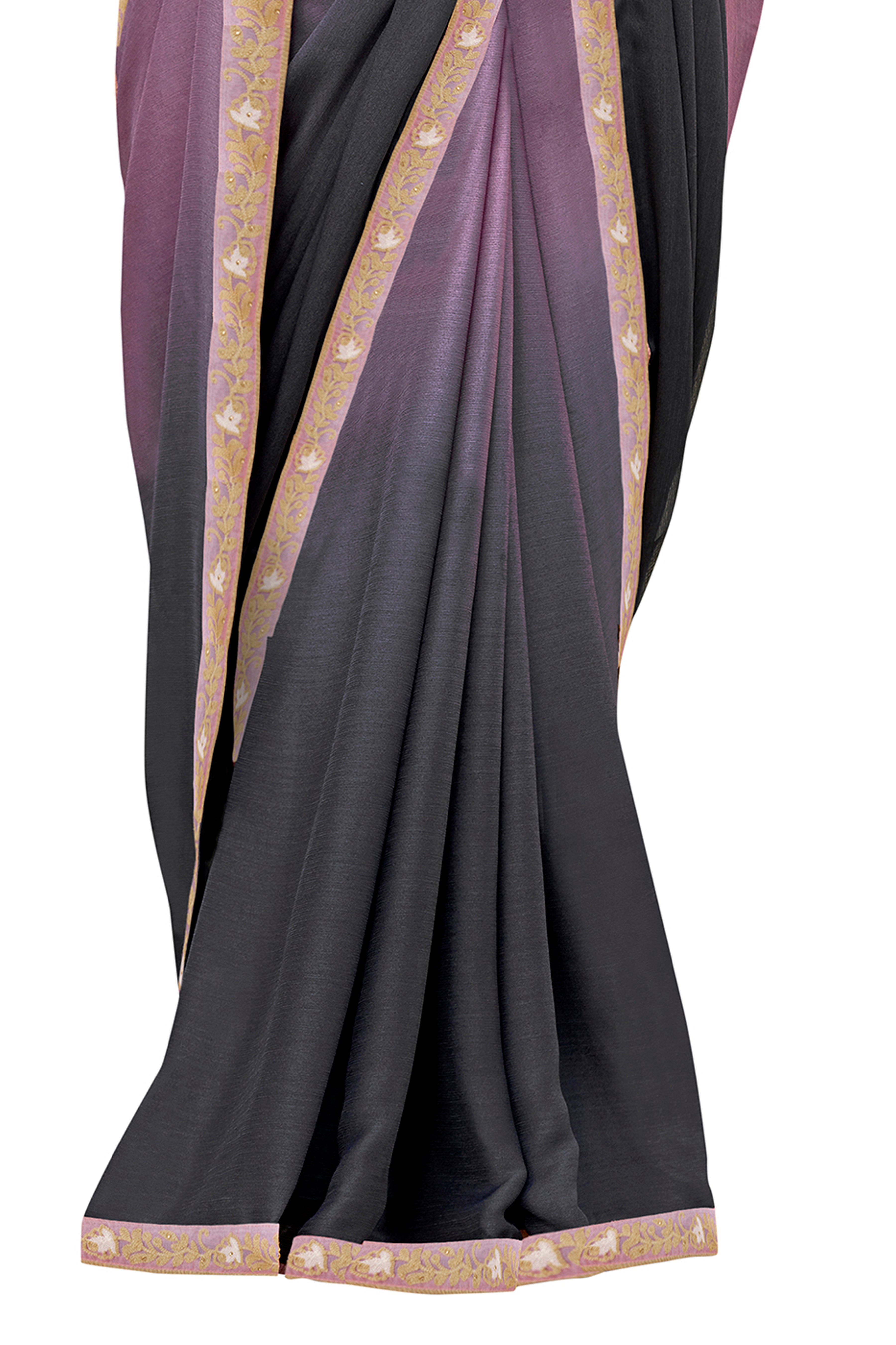 Vamika Purple Designer Saree With Double Blouse 1. Plain Silk Blouse 2. Poncho Blouse (With Embroidery And Stone Work)About the Product: Work: Em...