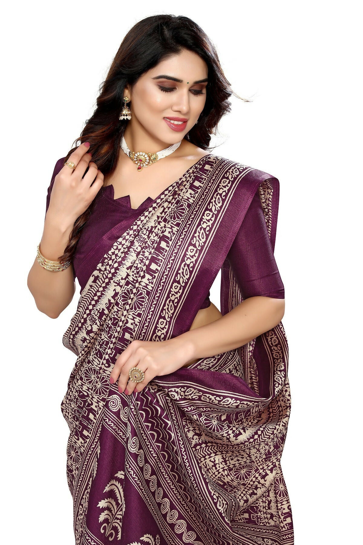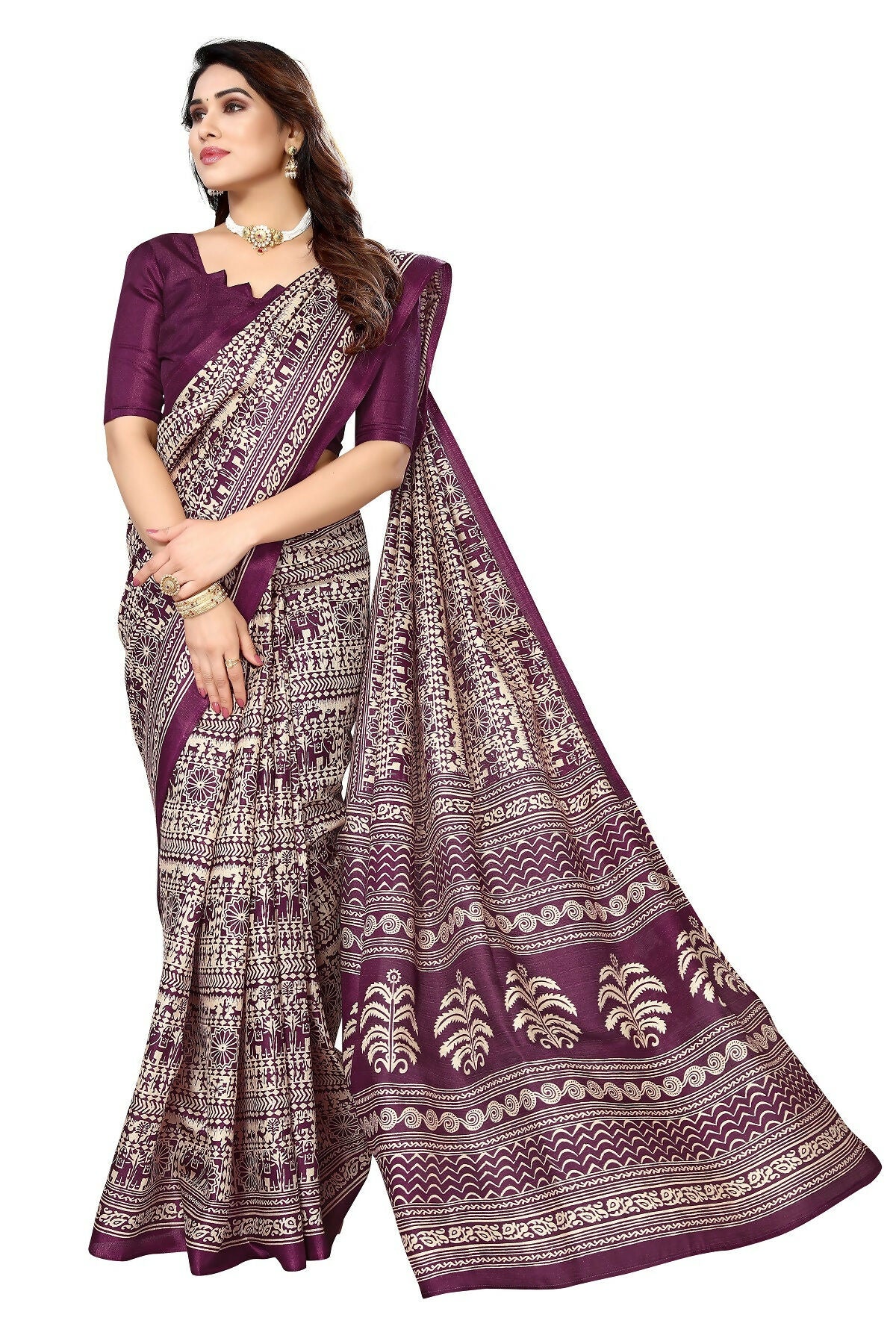 Vamika purple Printed Art Silk SareeAbout the Product: Work: Printed Base Fabric: Art Silk Fabric Saree: Art Silk Fabric Blouse: Art Silk Sare...