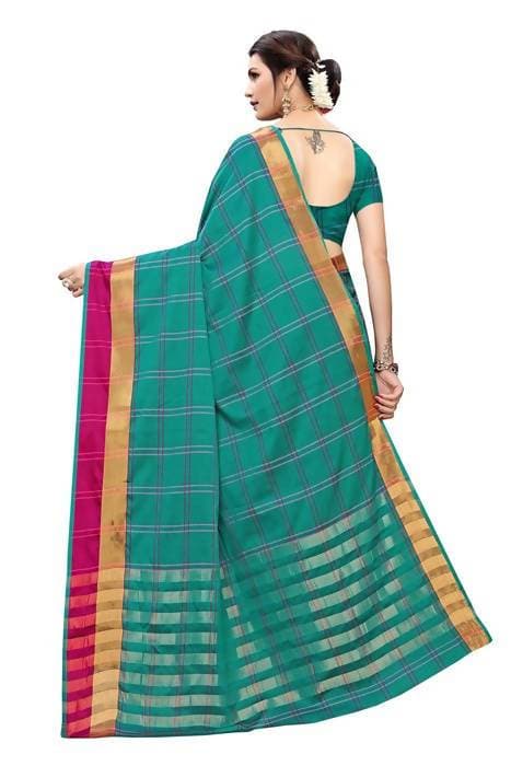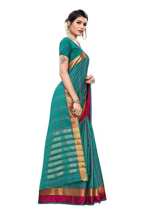 Vamika Rama Cotton Silk Weaving Saree (Rimi Checks Rama)
