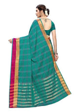 Vamika Rama Cotton Silk Weaving Saree  (Rimi Checks Rama)
