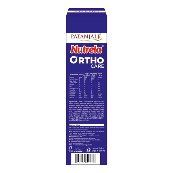 Take 120 ml of water, add 30ml (one cap) of Patanjali Nutrela Orthocare Juice, mix well & Consume immediately.