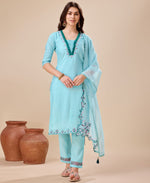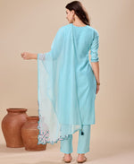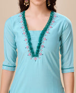 Prazu Fashion Sky Blue Viscose Silk Embroidered Kurta Set - S(36)