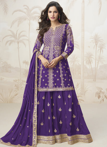 Vegaa Fashion Violet Chinon Silk Embroidered Sharara SuitAbout the Product:Wedding suit is the perfect choice for Indian festive or wedding event. ...