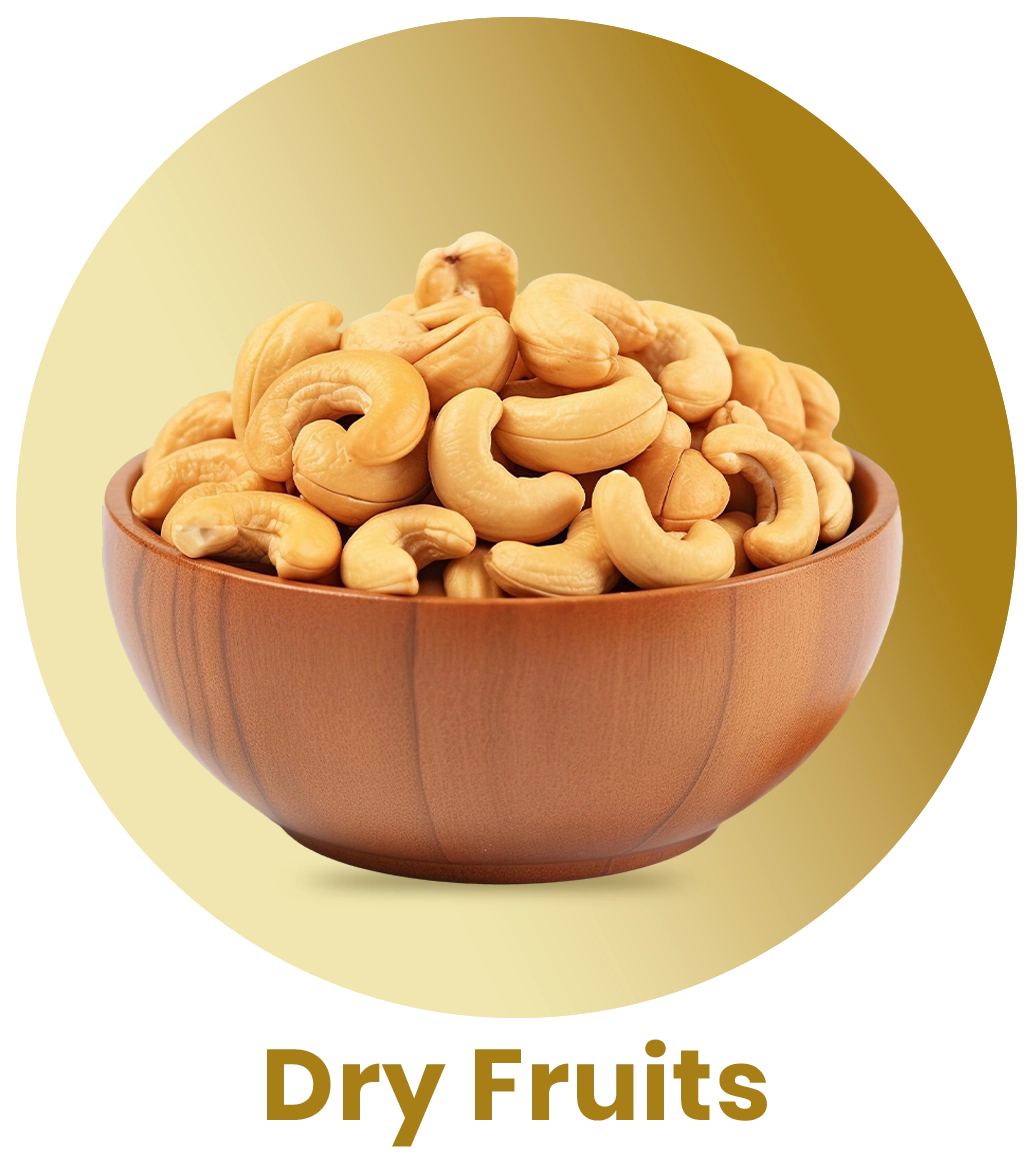 Dry fruits: With our platform's assortment of Indian Dry Fruits online, you can transform your snacking experience. Packed with vital nutrients and bursting with real tastes, these fruits will deliver the taste of India right to your fingers. Almonds, cashews, raisins, and dates fall within this category.