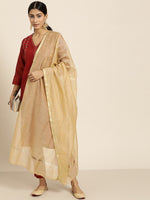 Maroon, golden and beige embroidered Kurta with Trousers with dupatta