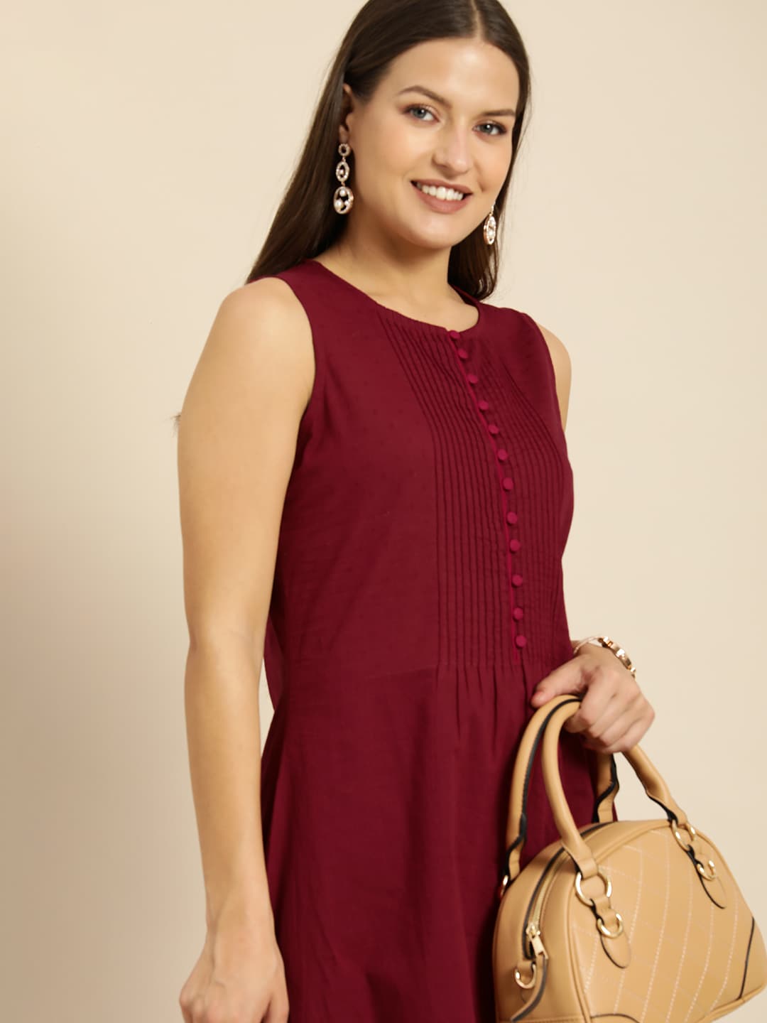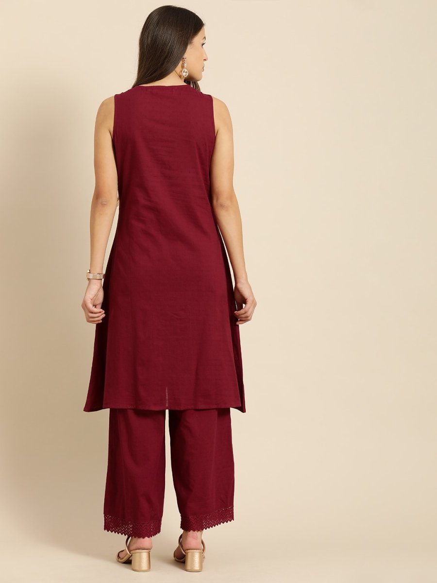 All About You Women Maroon Self Design Pure Cotton A-Line Kurta with Palazzos Product Details Maroon self design Kurta with Palazzos Kurta de...