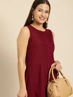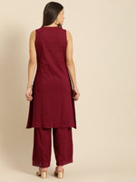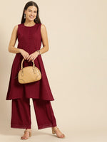 All About You Women Maroon Self Design Pure Cotton A-Line Kurta with Palazzos - XS