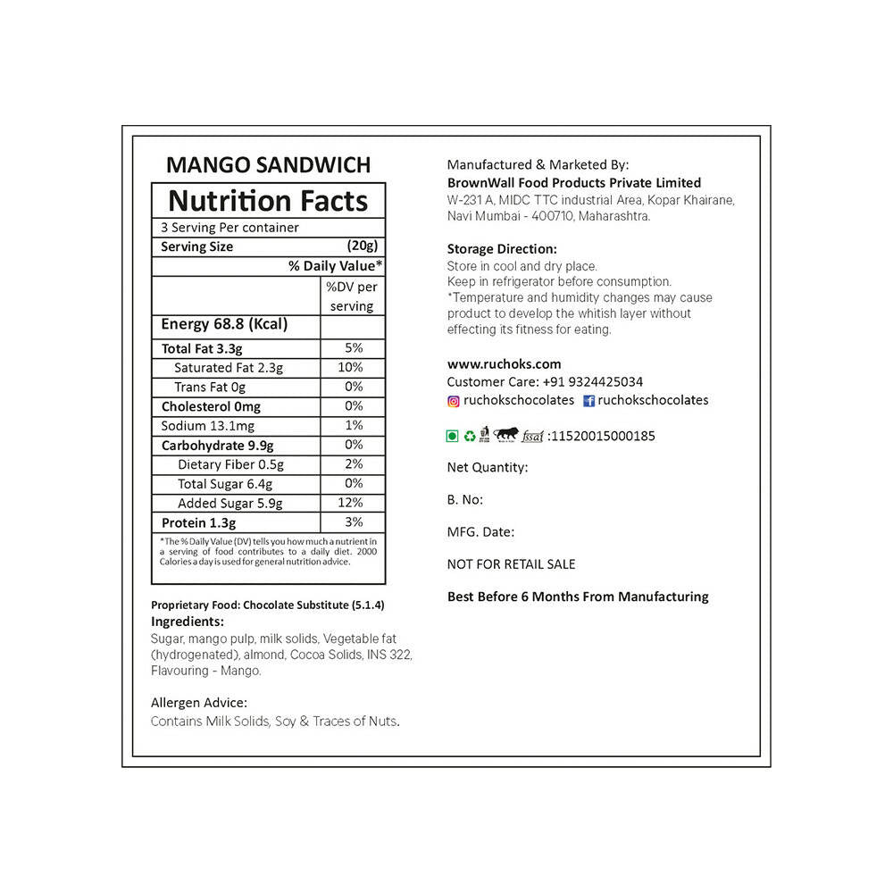 Dibha Ruchoks Mango Sandwich Chocolate About the product: Summer is synonymous with tasty mangoes! Ruchoks brings an innovative way to relish the '...