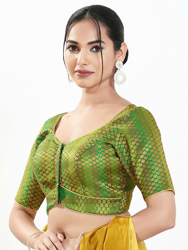 Joban Fashion Green Brocade Padded Blouse With Sweetheart Neck Elbow Sleeves