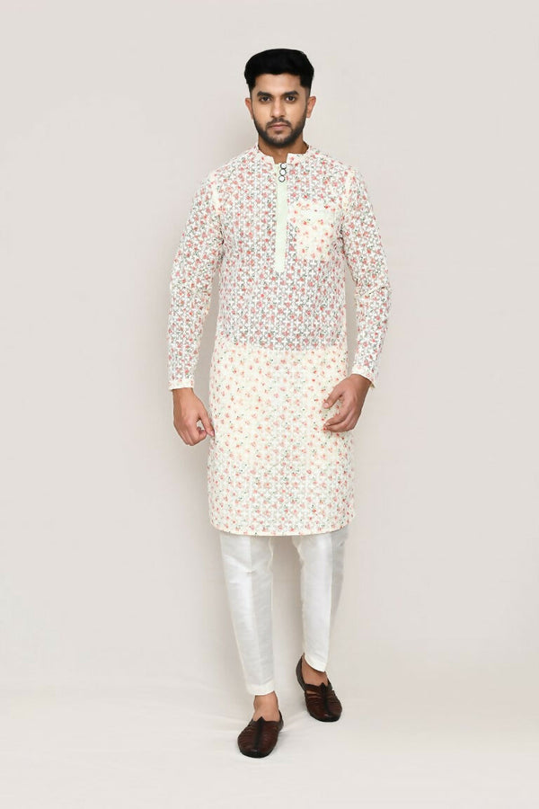 Joban Fashion Green Colored Georgette Based With Full Thread Work Fabric Kurta With Straight Fit Pant