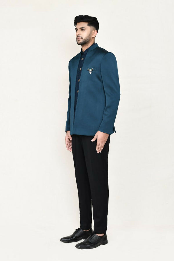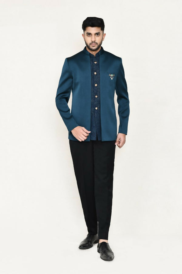 Joban Fashion Green Colored Imported Polyester Fabric Open Prince Coat, Jacket With PantAbout the Product: No. of Components: open prince coat, ja...