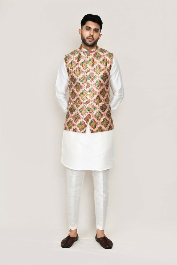Joban Fashion White Colored Art Silk Fabric Kurta, Jacket With Straight Fit Pant