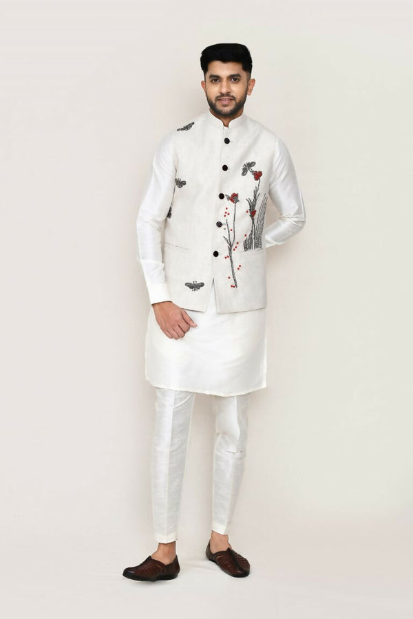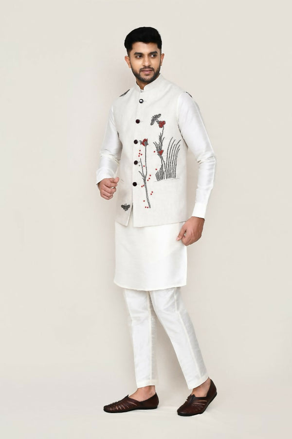 Joban Fashion White Colored Art Silk Fabric Kurta, Jacket With Straight Fit Pant
